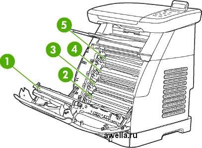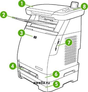 На рисунках ниже указано местоположение и названия основных компонентов MFP.