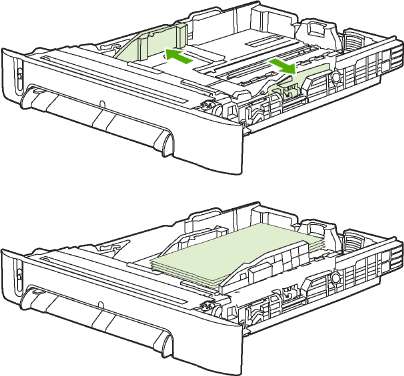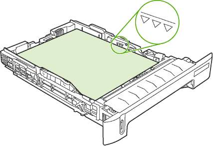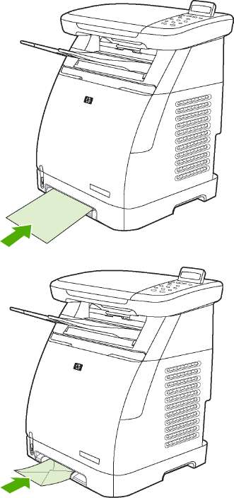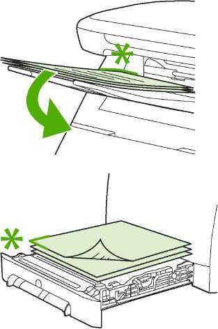 Если это специальная бумага, например этикетки, прозрачные пленки, глянцевая бумага HP LaserJet, фотобумага HP LaserJet, фирменные или печатные бланки, загрузите ее для печати лицевой стороной вверх и верхним краем в направлении передней части лотка. Для достижения лучших результатов рекомендуем пользоваться оригинальными.