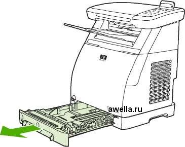 1. Выдвиньте лоток 2 или дополнительный лоток 3 из MFP и извлеките из него всю бумагу.