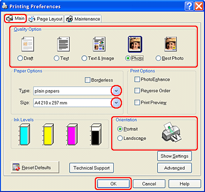 Щелкните OK, чтобы закрыть окно драйвера принтера.