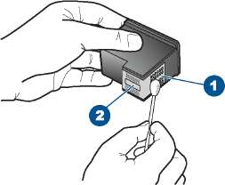 7. Выполните чистку только медных контактов. Подождите, пока картридж просохнет (приблизительно 10 минут).