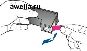 б. Потяните за розовый край пластиковой ленты и удалите ее.