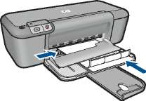 Загрузите стопку фотобумаги во входной лоток коротким краем вперед и стороной для печати вниз. Сдвиньте стопку бумаги вперед до упора.