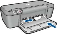 3. Поместите поздравительные открытки в правую часть входного лотка. Бумага должна быть расположена стороной для печати вниз.