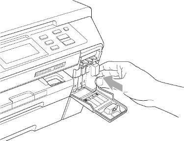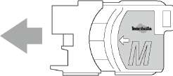 Разблокируйте того цвета, который указан на ЖК-дисплее, нажав на фиксатор как показано на рисунке. Выньте этот его из устройства.