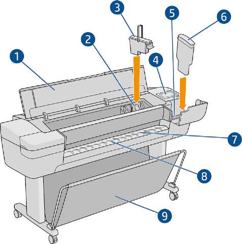Основные компоненты принтера HP DesignJet T1700