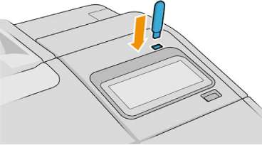 1. Установите флэш-накопитель USB с одним или несколькими файлами TIFF, JPEG, HP-GL/2, RTL, PDF или PostScript в USB-порт принтера.