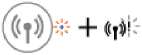 Индикатор Беспроводное соединение мигает, значок Беспроводное соединение горит, значок Проблема с беспроводным соединением мигает.