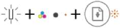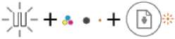 • Оба значка Уровень чернил мигают (сегменты не горят), индикатор Предупреждение о чернилах горит, индикатор Возобновить мигает.