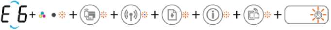 • Значение значка Количество копий попеременно меняется с буквы «Е» на цифру «6». В то же время все индикаторы на панели управления мигают.
