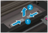 3. Нажмите на отверстие в крышке тракта подачи бумаги и поднимите крышку. Извлеките замятую бумагу.