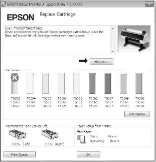 Инструкцию по замене чернильного картриджа можно просмотреть, нажав на кнопку How to (Справка).