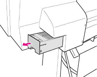В контейнере для отработанных чернил собираются чернила, отработанные при очистке печатающей головки. В модели Epson Stylus Pro 9890/9908 находятся два контейнера для отработанных чернил (по одному в левой и правой части устройства). В модели Epson Stylus Pro 7890/7908 находится один контейнер (памперс) для отработанных чернил (в правой части устройства). Необходимо заменить контейнер при появлении соответствующего сообщения на ЖК-панели принтера.