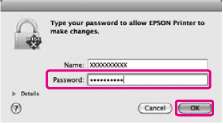 Если отобразился указанный ниже экран, введите пароль пользователя для входа в Mac OS X и затем щелкните OK.