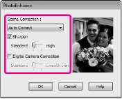 Используя функцию PhotoEnhance, вы можете корректировать цвета фотографий в соответствии с их содержанием (например фотографии людей или ночная съемка). Вы можете распечатывать цветные данные в сепии или в черно-белом цвете. Цвета автоматически корректируются при выборе режима печати.