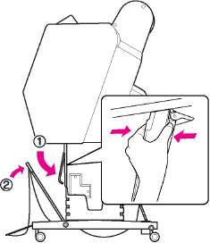 ОДля Epson Stylus Pro 9890/9908: установите заднюю корзину в вертикальное положение.