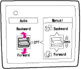 При печати с выбранным параметром Roll Auto Cut On (Рулон с автоматическим обрезом) faВ , установите переключатель бобины Auto в положение Off, иначе принтер не обрежет бумагу. Вы можете установить переключатель Auto в положение Off во время печати для автоматической обрезки бумаги.