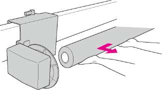 Для бумаги Singleweight Matte Paper шириной 24 дюйма или шире: расположите приспособление для натяжения внутри провисающей части рулонной бумаги. Убедитесь, что вы расположили его по центру.