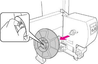 Извлеките стержень приемной бобины из защелки фланцев на съемной части и приводном устройстве.