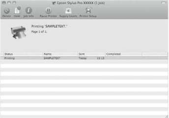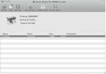 В меню Dock отобразится значок принтера. При нажатии на значок принтера, вы можете проверить выполнение текущего задания и информацию о состоянии принтера. Также, вы можете отменить задание для печати.