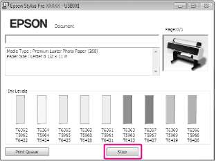 Нажмите Stop (Стоп) в диалоговом окне индикатора выполнения EPSON Progress Meter.