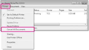 Если вы хотите удалить все задания печати, выберите Cancel all documents (Отменить все задания) в меню Printer (Принтер).