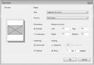 В диалоговом окне Page Setup (Параметры страницы) задайте размер бумаги и другие параметры.