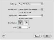 В Mac OS X 10.6 и 10.5: щелкните значок, чтобы вызвать экран Page Setup и задать нужные настройки.
