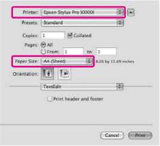 В раскрывающемся списке Paper Size выберите нужное значение, соответствующее размеру загруженной бумаги. XXXX — фактический размер бумаги, например А4.