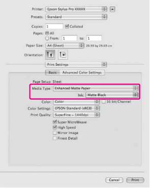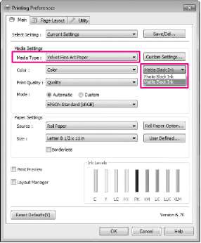 После установки типа бумаги в параметре Media Type выберите нужный тип черных чернил.