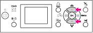 Каждым нажатием на кнопку вы можете подать бумагу вперед на 3 мм. Если вы хотите чтобы бумага подавалась быстрее по направлению вперед, нажмите и удерживайте данную кнопку в течение трех секунд. Каждым нажатием на кнопку ^ вы можете подать бумагу на 20 см в обратном направлении.