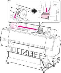 Рекомендуется загружать рулонную бумагу непосредственно перед началом печати. Если оставить рулонную бумагу в принтере, роллер фиксации бумаги может оставить след на ее поверхности.