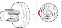 Сдвиньте адаптер для держателя вправо и вставьте его полностью в вал держателя.