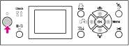 После печати рулонная бумага сматывается отпечатанной стороной наружу. Чтобы сматывание рулона началось немедленно, нажимайте на эту кнопку в течение 3 секунд.