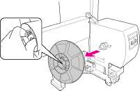 Если автоматическая приемная бобина установлена и на ее стержень загружена бумага для приема в нужном направлении, это устройство можно использовать для приема печатного материала.