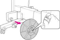 Извлеките стержень приемной бобины из защелки фланцев на съемной части и приводном устройстве.