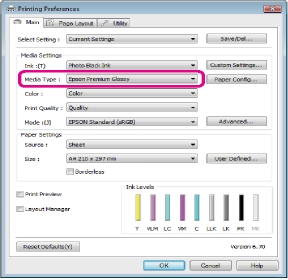 Выберите нужный тип бумаги из списка Media Type (Тип носителя).