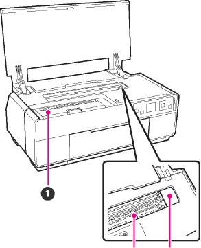 Двигаясь влево и вправо, под высоким давлением распыляет чернила через дюзы. Не двигайте печатающую головку руками.