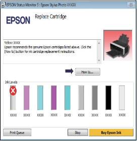 Если возникает ошибка или требуется заменить какого-либо цвета черного, голубого, пурпурного, желтого, светло-голубого, светло-пурпурного, серого, матово-черного, светло-серого, отображается соответствующее сообщение.