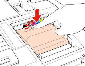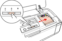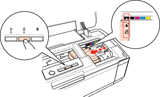 Если чернила закончились или заканчиваются в нескольких, печатающая головка перемещается к отметке. Это происходит при каждом нажатии на кнопку чернил до тех пор, пока не будут отмечены все заканчивающиеся или пустые.