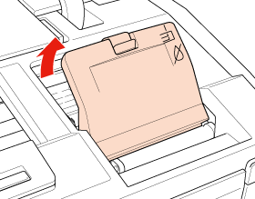 Сожмите защелки на краях пустого, который собираетесь заменить. Выньте из принтера.