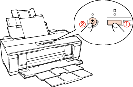Удерживая кнопку бумаги, нажмите на кнопку питания, чтобы включить принтер. Когда питание принтера включится, отпустите обе кнопки.
