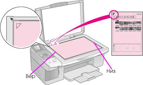 Убедитесь, что треугольник в левом верхнем углу индексной странице напечатан должным образом. Если индексная страница напечатана неправильно устройство не сможет отсканировать ее.