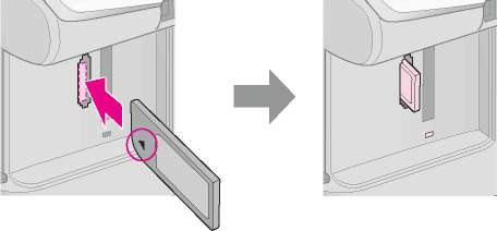 4. Убедитесь, что индикатор карты памяти не горит и в слоты не вставлена другая карта памяти. Вставьте карту памяти.