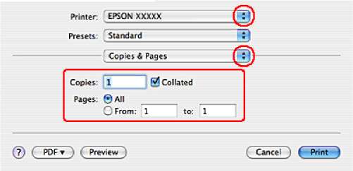 Выберите используемый принтер для параметра Printer (Принтер). Затем выберите значение параметра Copies & Pages (Копии и страницы).