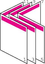 Для получения оптимальных результатов при скреплении буклета используйте специальный степлер для центральной прошивки или мощный степлер с возможностью крепления далеко от края страницы.