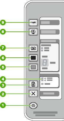 Максимальное количество копий, которое можно выбрать с помощью панели управления, - 9. Чтобы напечатать большее количество копий за один раз, можно использовать программное обеспечение HP. Если в программном обеспечении указано большее количество копий, на панели управления отображается только последняя цифра количества копий. Например, при печати 25 копий на дисплее будет отображаться цифра 5.