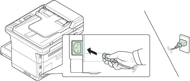 2 Подключите другой конец шнура питания к сетевой розетке.