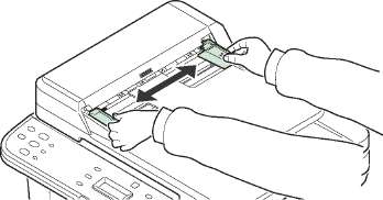 Убедитесь, что направляющие ширины точно соответствуют оригиналам. Если имеется зазор, сдвиньте направляющие ширины оригиналов. Зазор может вызвать защемление оригиналов.