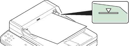 Убедитесь, что высота стопки загруженных оригиналов превышает указанный уровень. Превышение максимального уровня загрузки может привести к застреванию оригиналов (см. рисунок).
